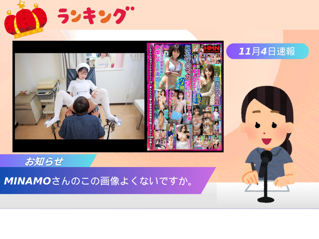 💡今日のピックアップ商品 🚀 MINAMOが24ランクアップで単体最高位に!SODクリエイトのMINAMOさん主演作「性欲処理専門セックス外来医院23 特別編」が、前日の29位から5... -