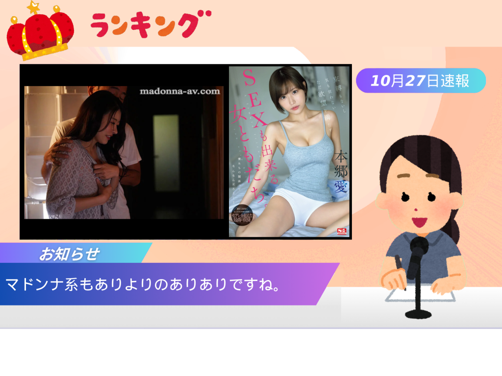 【10/27 デイリー速報】本郷愛が単体最高位の6位に!小日向みゆうVRも急上昇!