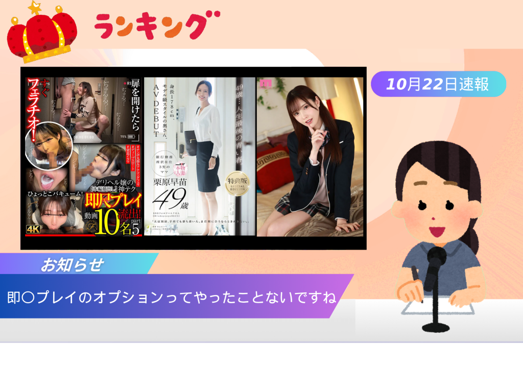 【10/22 デイリー速報】新ありなVRが4位に上昇!「即尺プレイ」は87ランクアップ!
