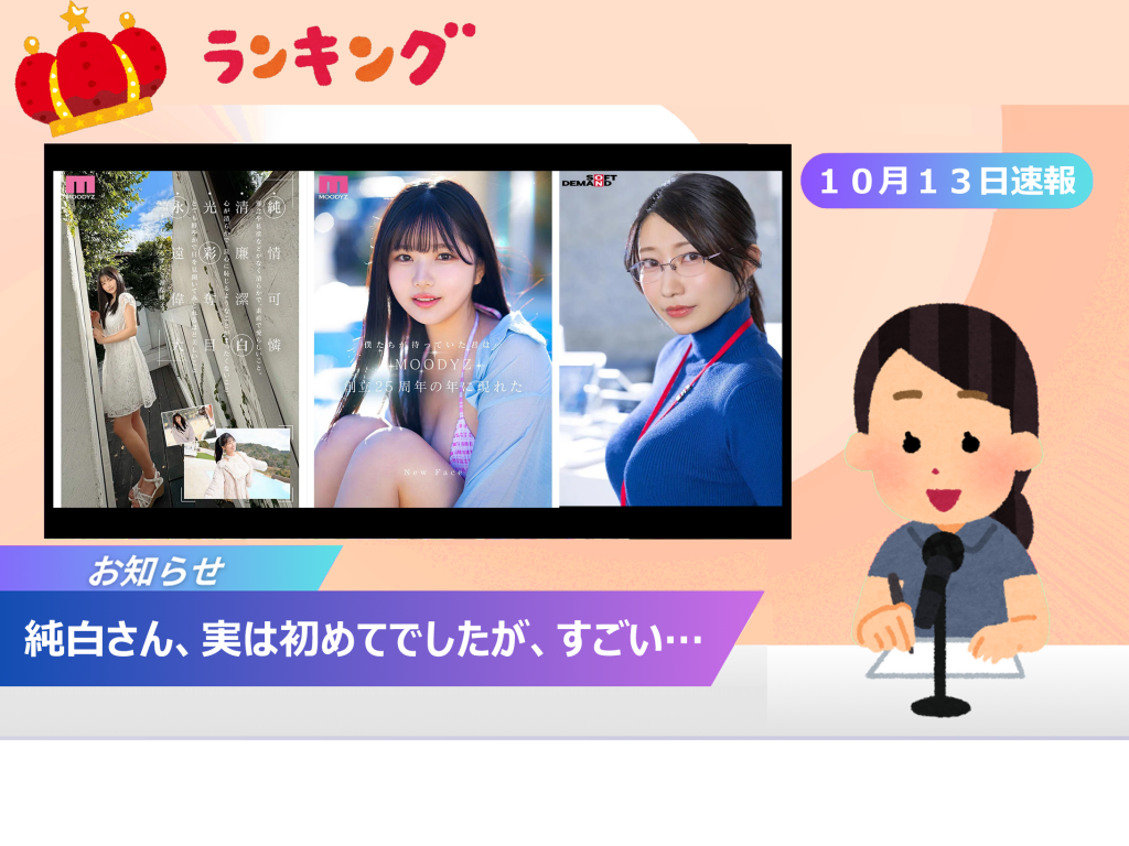 今日の注目ポイント 👑 新人・純白彩永が40ランクアップで新女王に!昨日41位で初登場したムーディーズの大型新人、純白彩永さんのデビュー作が、予想通り一気に1位へと... -