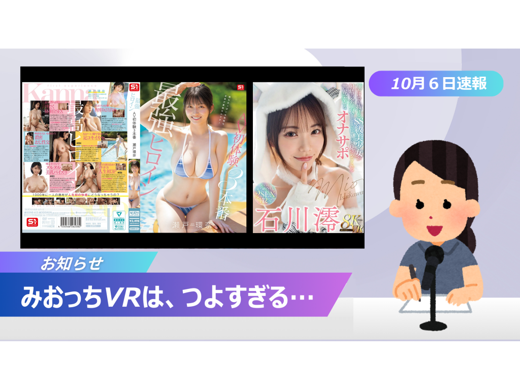 【10/06 デイリー速報】石川澪のVR作品が18ランクアップでトップ10入り!【PR】